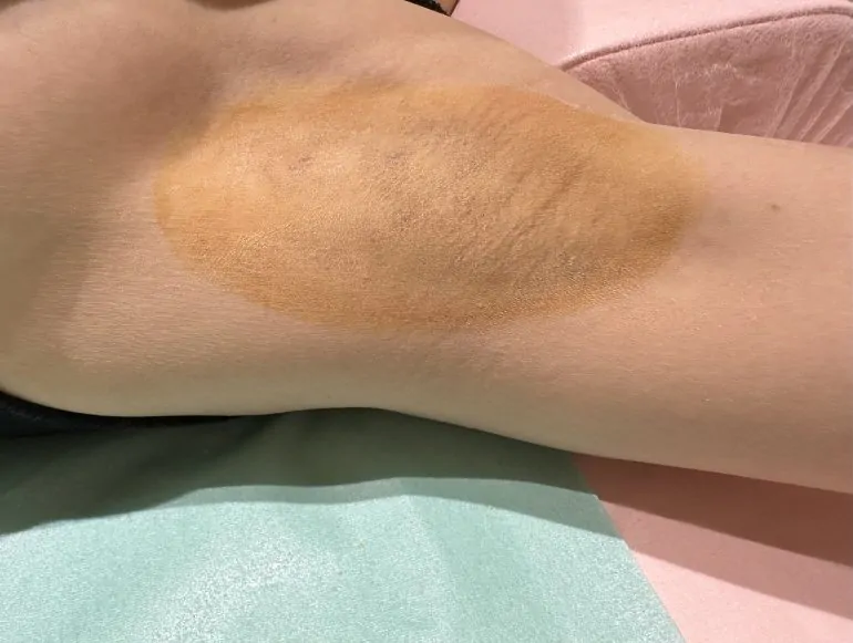 ワキの皮膚にヨウ素液(ヨード液)を塗る